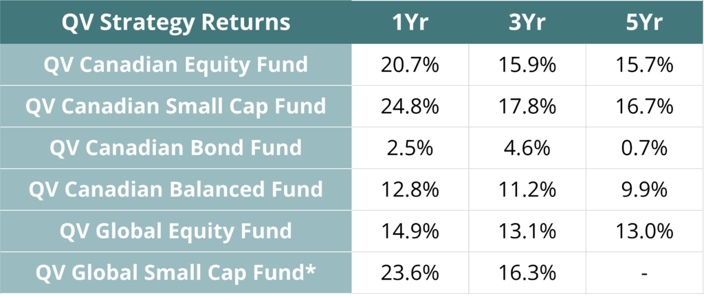 *A five-year figure is not available, as the inception date of the QV Global Small Cap Fund was April 1, 2021.